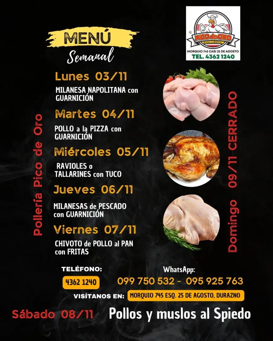 Menú Semanal - Pollería Pico de Oro (Del 3/11 al 9/11)