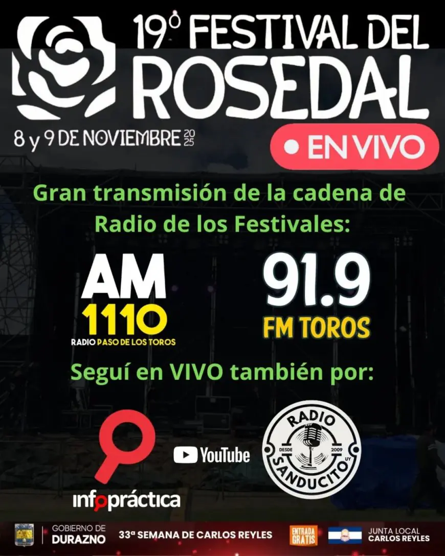 Viví el Festival del Rosedal en VIVO junto a la Cadena de Radio de los Festivales, con la gran transmisión del equipo de AM 1110 y 91.9 FM Paso de los Toros.