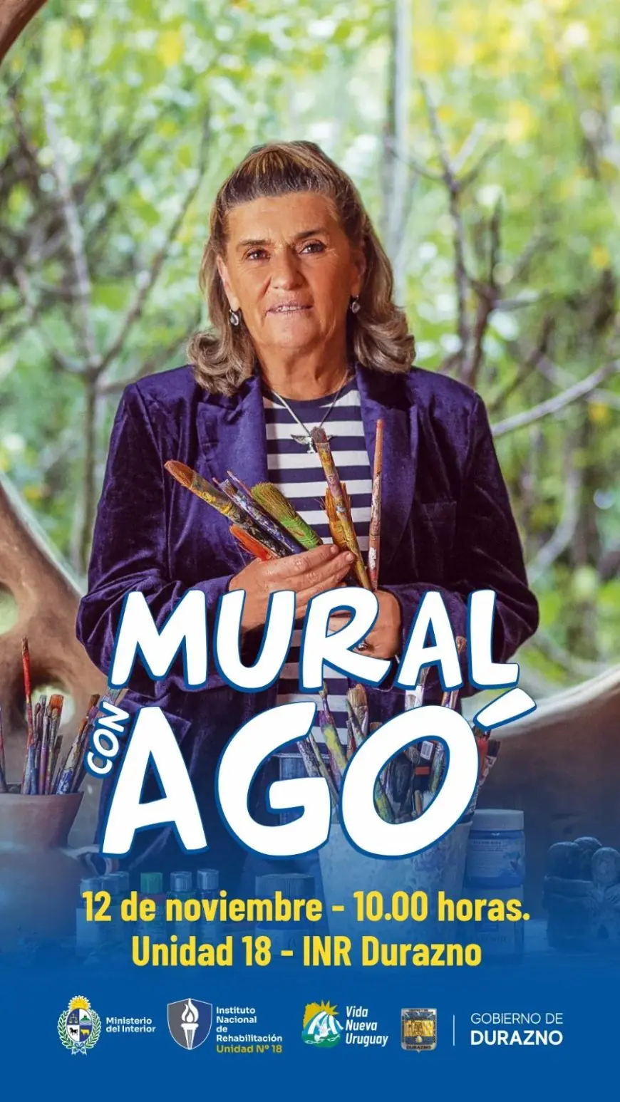 Este miércoles 12 de noviembre, a las 10:00, la artista plástica uruguaya Agó Páez visitará la Unidad 18 del Instituto Nacional de Rehabilitación (INR) de Durazno) para liderar la creación de un mural colectivo frente a la cancha de fútbol del establecimiento.