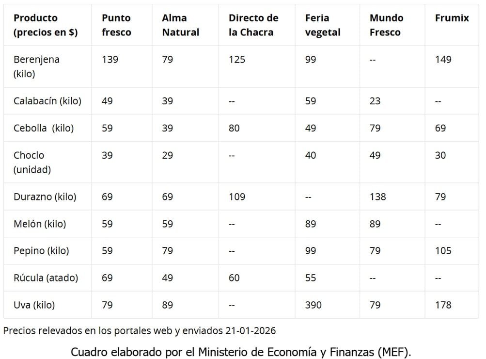 Son buenos para la salud, son frescos y se producen en Uruguay. Hasta el 2 de febrero las frutas de estación son cebolla, berenjena, calabacín, choclo, durazno, melón, pepino, rúcula y uva, los cuales son propios para consumir en esta época del año a precios adecuados.