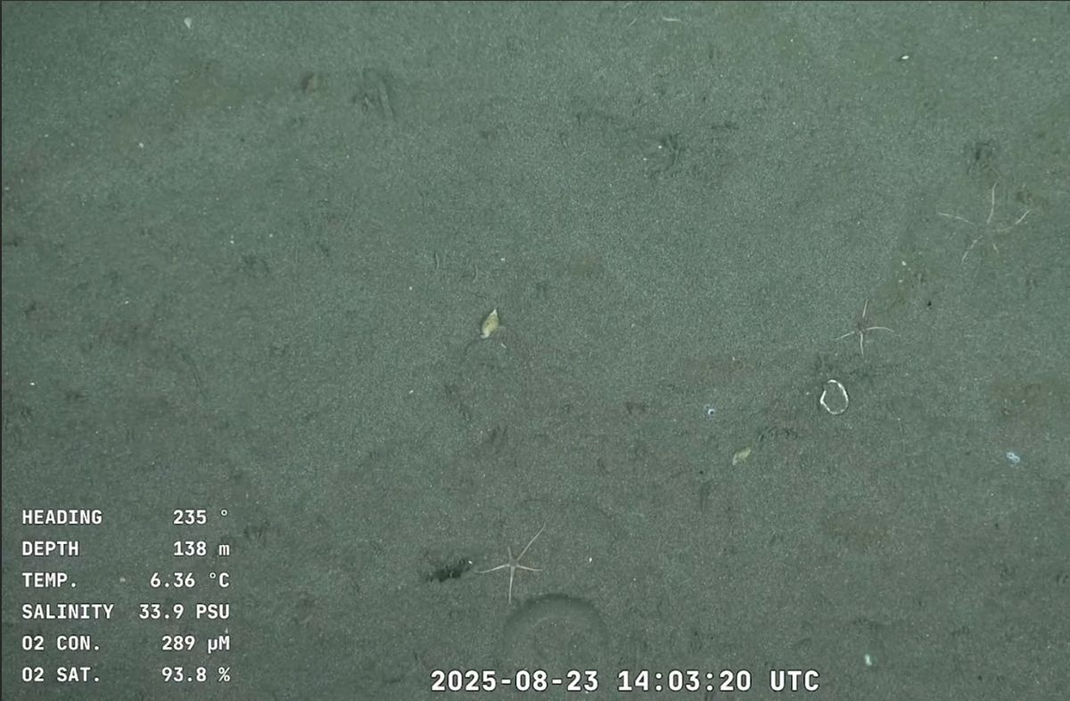 En las primeras imágenes captaras a 138 metros de profundidad se pudieron observar varias especies llamativas, como el cangrejo ermitaño, el tiburón lija, las rayas y los ofiuros.
