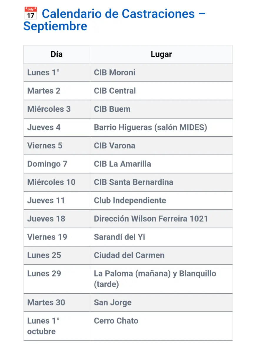 Las inscripciones ya están abiertas y pueden realizarse en los Centros de Integración Barrial (CIB), en las veterinarias adheridas (Dra. Ana Acuña, Dumbo, La Cucha, Animalia y El Lugar), así como en el interior del departamento en Juntas Locales y Municipios.