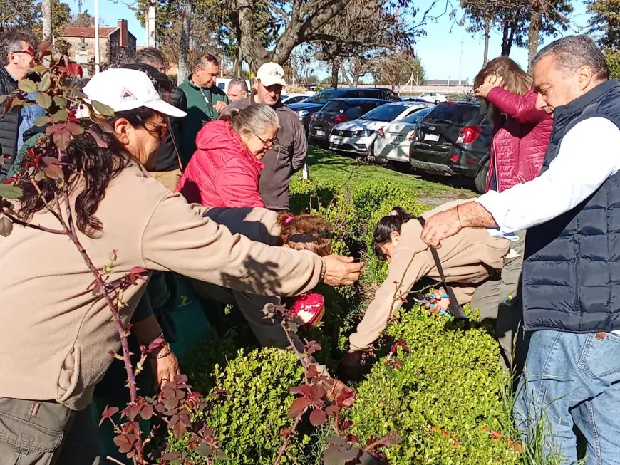 La instancia contó con la participación del Intendente Dr. Felipe Algorta, la Directora de Servicios Inés Colina, integrantes del Durazno Garden Club y vecinos de la ciudad. La capacitación estuvo a cargo de los ingenieros agrónomos Martín Maisonave y Eduardo Pacheco, junto a la paisajista Elina Daverede, quienes además compartieron técnicas de reproducción de rosales mediante gajos.