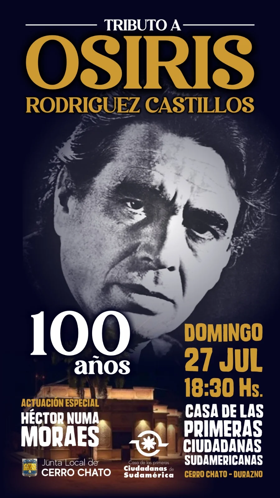 El tributo a Osiris Rodríguez Castillos contará con la participación especial del cantautor Héctor Numa Moraes e incluirá emotivas referencias a la vida y trayectoria del recordado poeta, escritor y cantautor uruguayo.