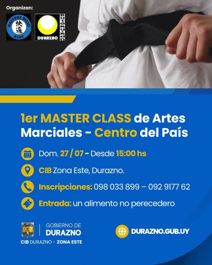 La jornada, organizada por Kateki Dojo ASAK y Butokukan Durazno, contará con la participación de instructores y practicantes de distintas disciplinas, ofreciendo un espacio para aprender, entrenar y compartir la cultura y el espíritu marcial.