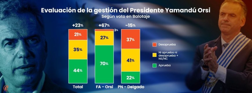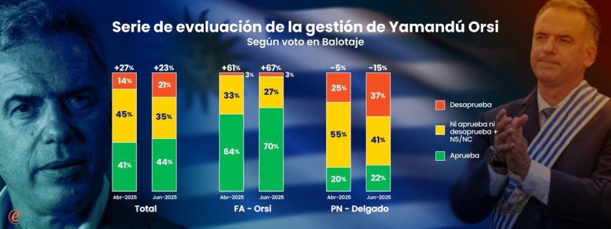 Al terminar su cuarto mes de gestión, Orsi mantiene una evaluación de balance positivo entre los uruguayos. El presidente se fortalece en el electorado propio y pierde algo de terreno entre los opositores. El escenario es algo más polarizado que en abril, cuando predominaban los juicios intermedios.