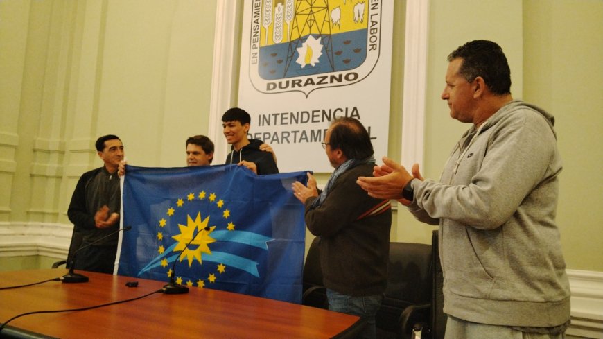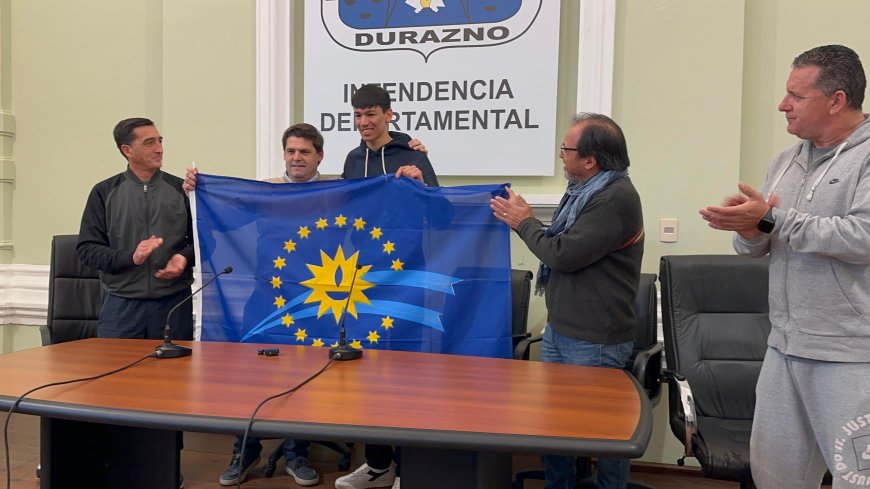 El Intendente de Durazno, Dr. Felipe Algorta, entregó este lunes la bandera del departamento al joven atleta Santiago Méndez, quien representará a Uruguay en el Campeonato Iberoamericano de Atletismo, que se celebrará en Paraguay los días 19 y 20 de julio. Méndez competirá en la especialidad de Salto Alto, llevando consigo los colores del país y siendo también el orgullo de su tierra natal, La Paloma.